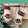 Рождественские подарочные мешки в клетку с отпечатком лапы собаки ручной работы