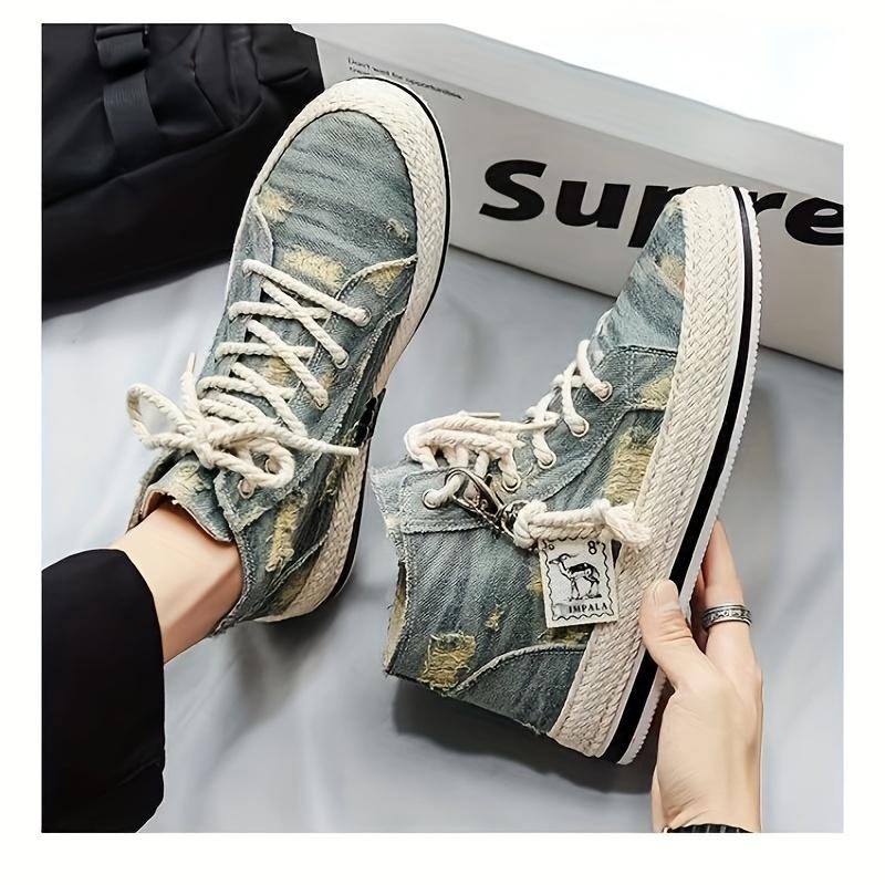 Мужские винтажные ретро кеды с высоким верхом для скейтборда, удобные нескользящие повседневные холщовые кроссовки на шнуровке для мужских видов активного отдыха