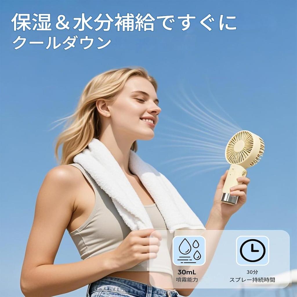 [Летнее увлажнение] Этот вентилятор-распылитель оснащен ультрабольшим резервуаром для воды объемом 30 мл, который может поддерживать распыление воды до 2,5 часов, создавая прохладный воздух и освежающий туман для увлажнения вашей кожи и поддержания вашего комфорта даже в жаркую погоду.