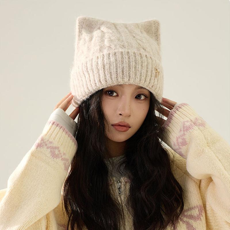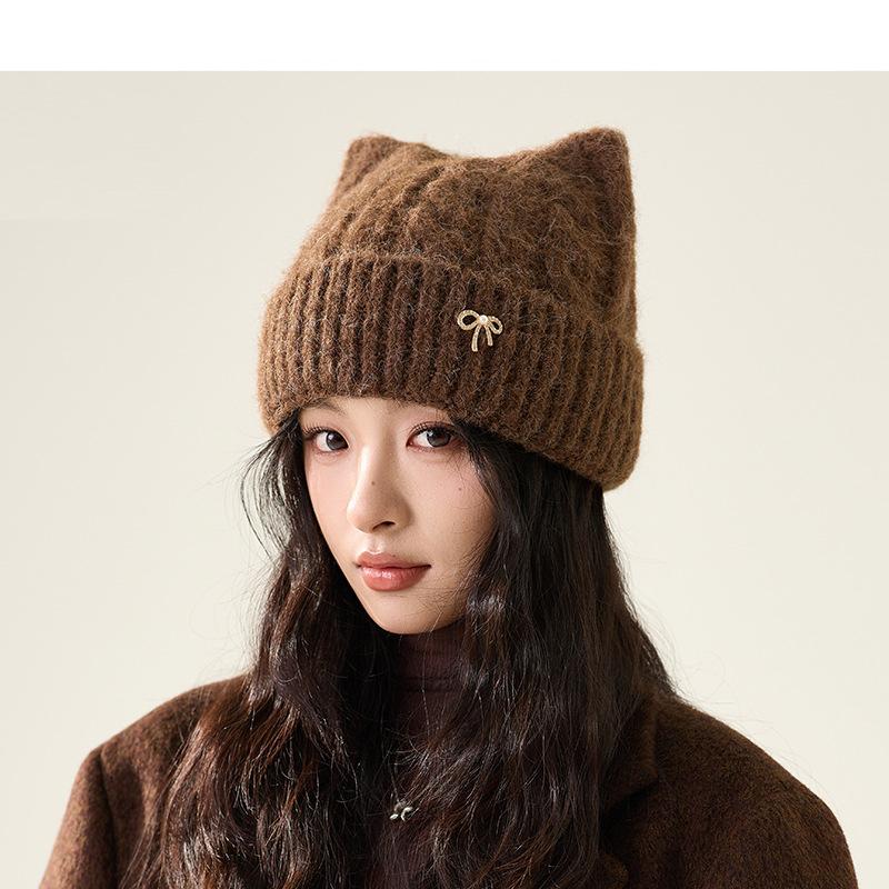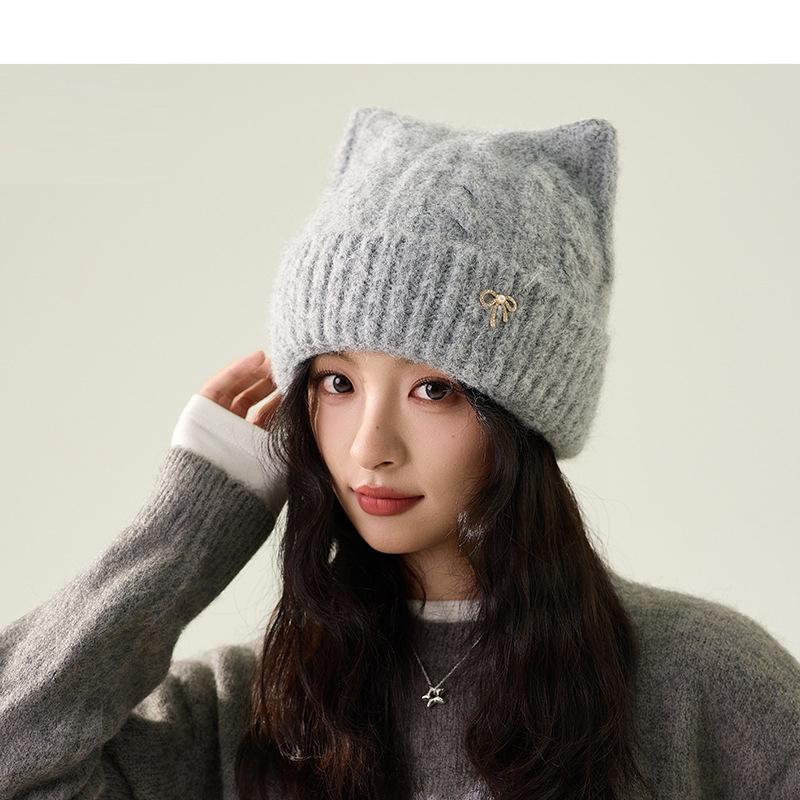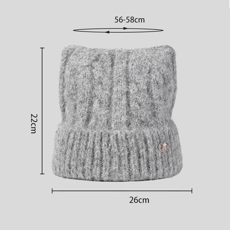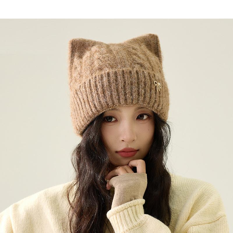 Мультяшные кошачьи ушки Толстая вязаная шапка Женская шапка из шерсти с бантом Теплая шапка