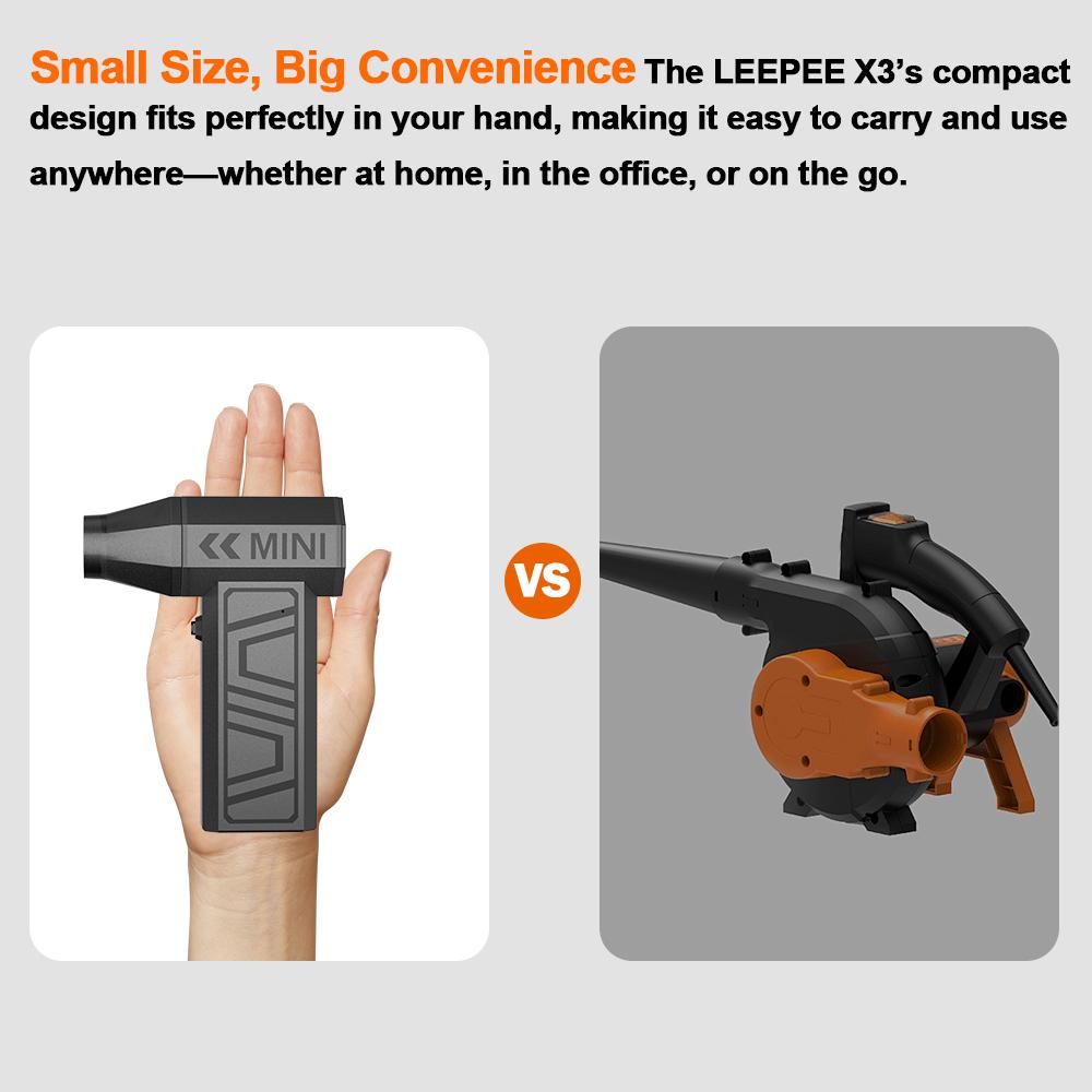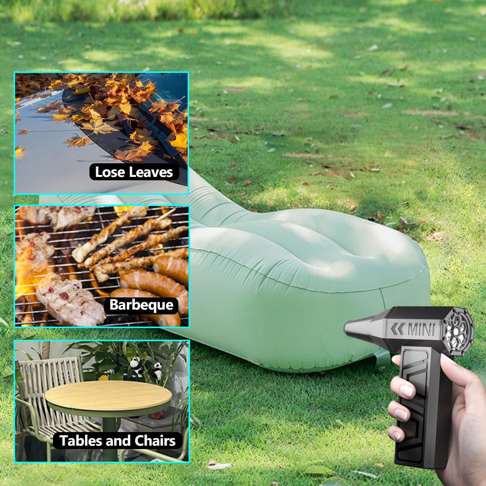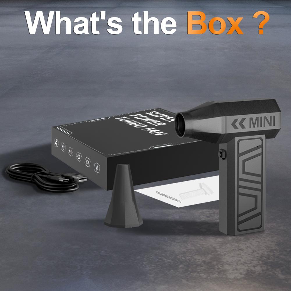 Easy to use operation:Knob stepless speed regulationThe user-friendly design of portable turbo fans ensures easy functionality. In addition, the charging board also has safe and reliable charging protection and overheating protection functions. The internal brushless motor can achieve high speeds of up to 130000RPM (revolutions per minute).