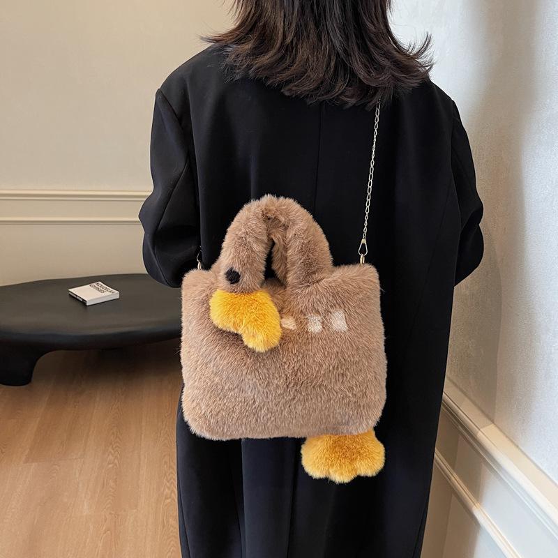 Японская милая контрастная сумка-утка 2025 новая плюшевая модная сумка через плечо персонализированная пушистая сумка-мессенджер женская