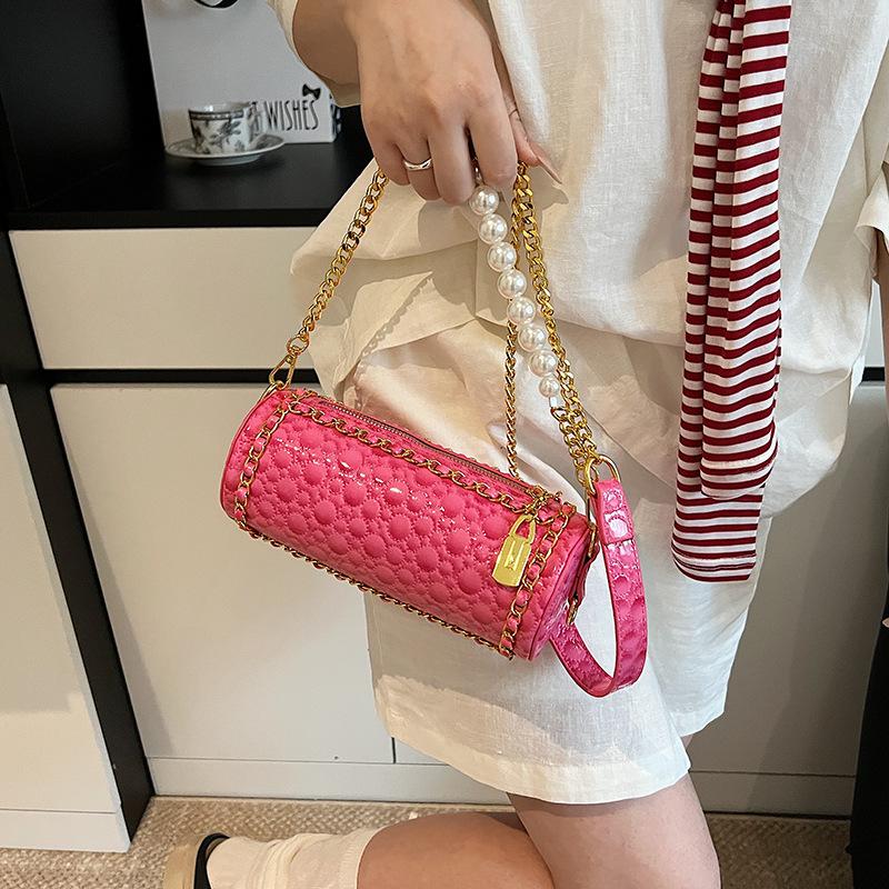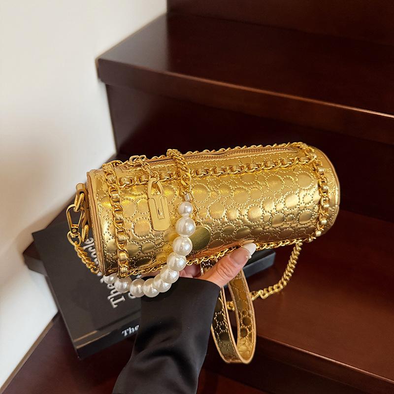 Премиальная сумка-цилиндр с чувством, женская, 2025, лето, новая, универсальная сумка-мессенджер через плечо, с регулируемой цепочкой-золотым шариком, сумка-подушка