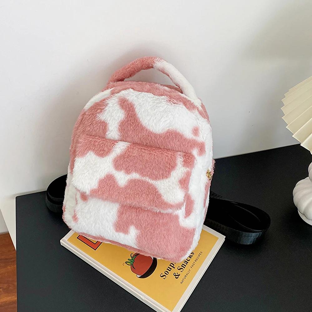 1 шт. Плюшевые рюкзаки с коровьим принтом, многофункциональная портативная сумка через плечо, женские сумки для покупок с регулируемым ремешком для подарков на день рождения