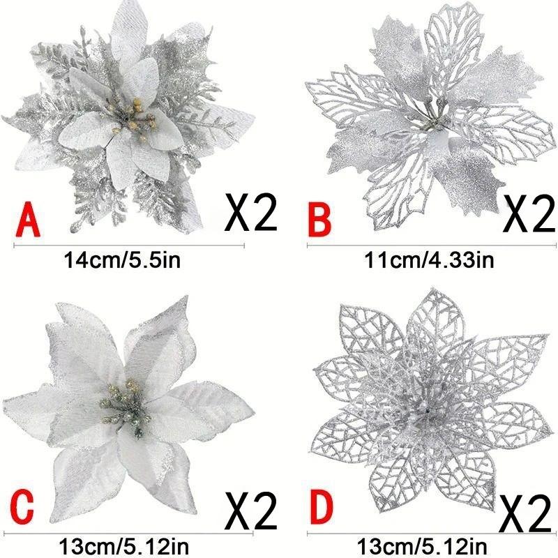 8 шт. Рождественские искусственные цветы с клипсой Рождественские украшения для елки для домашнего декора Новогодние DIY Рождественский венок Ремесленные аксессуары