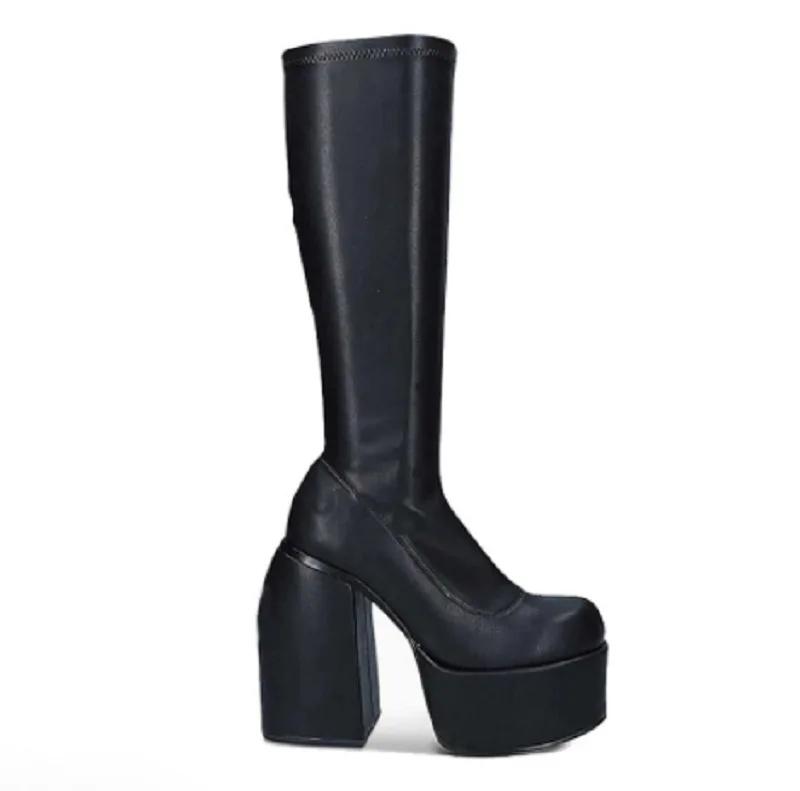 2025 Новые Большого размера Ботинки до колена с квадратным носком и толстым каблуком Женские Зимние на резиновой подошве
