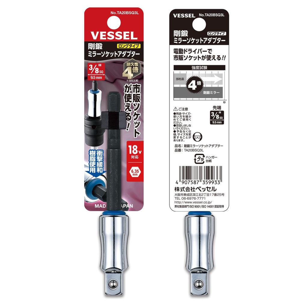 VESSEL Forged Mirror Socket Adapter TA20BSQ3L (Long), 9.5mm Drive,