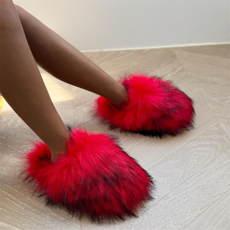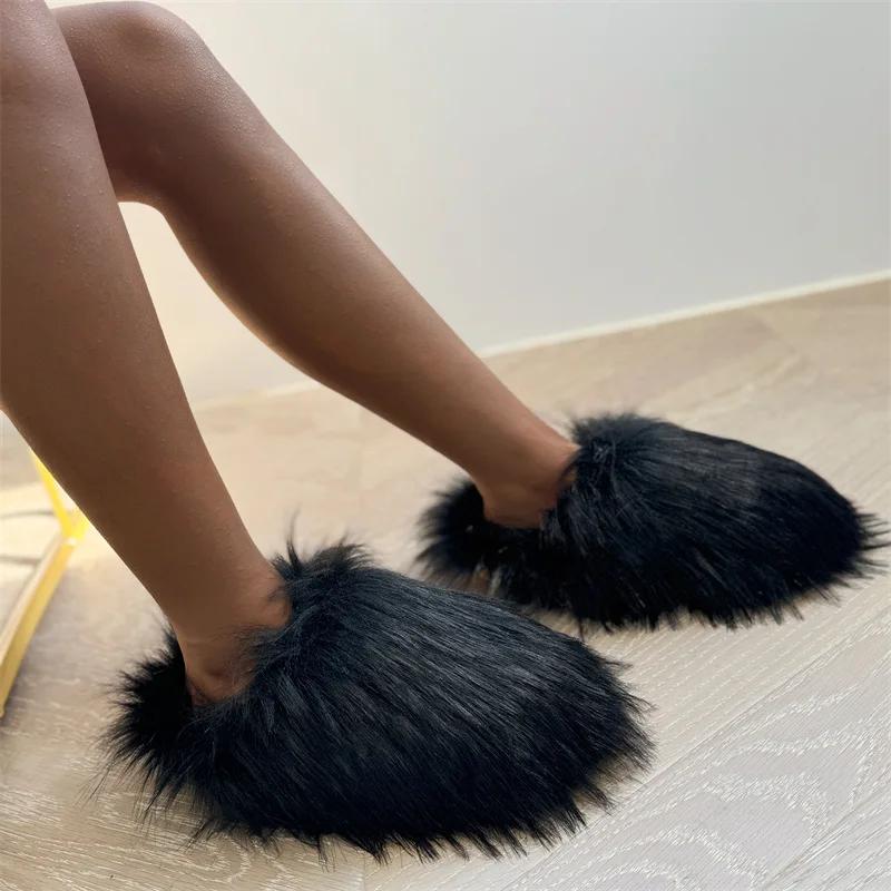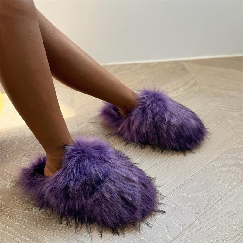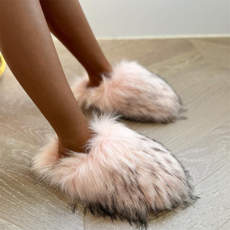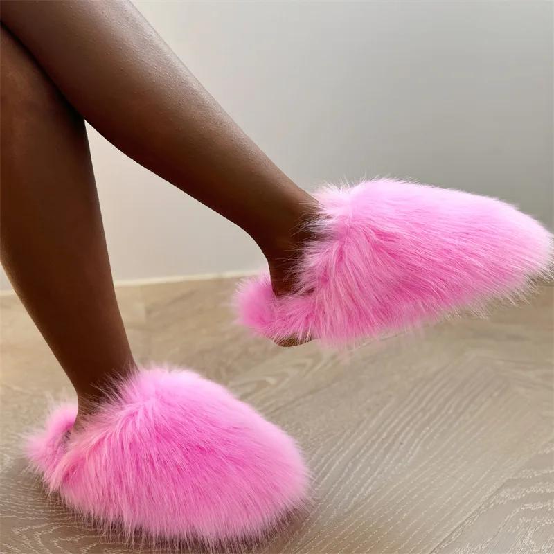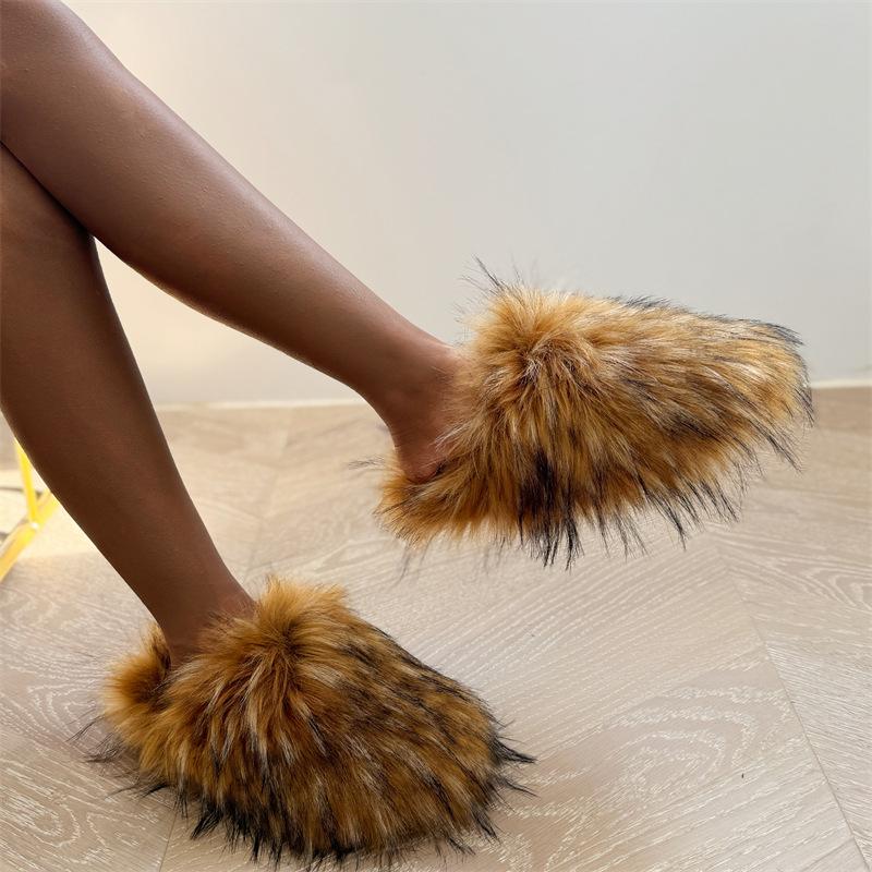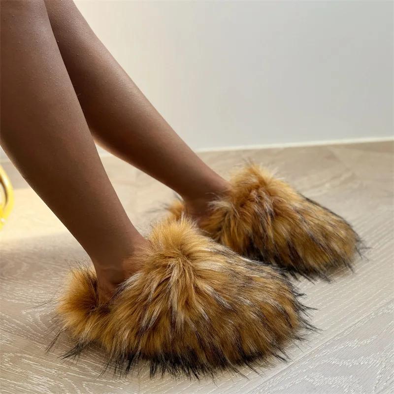 2025 Женские зимние тапочки из енотового меха, теплые плюшевые шлепанцы, тапочки из роскошного пушистого искусственного меха, домашняя хлопковая обувь, домашние меховые шлепанцы