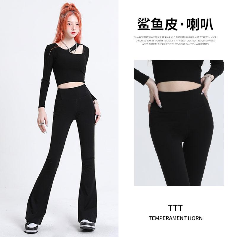 Микро-пулл брюки-акула женская верхняя одежда весна и осень новые высокая талия подъем бедер низ тонкие черные йога брюки-клеш