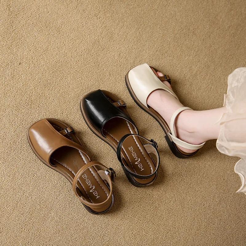 Бежевые босоножки на каблуке с ремешком на пряжке, удобная обувь для женщин, лето 2025, черные, на плоской подошве, прозрачные, низкий каблук, модные, новые, закрытые, с перфорацией, Cas — купить товар онлайн с бесплатной доставкой по всему миру!