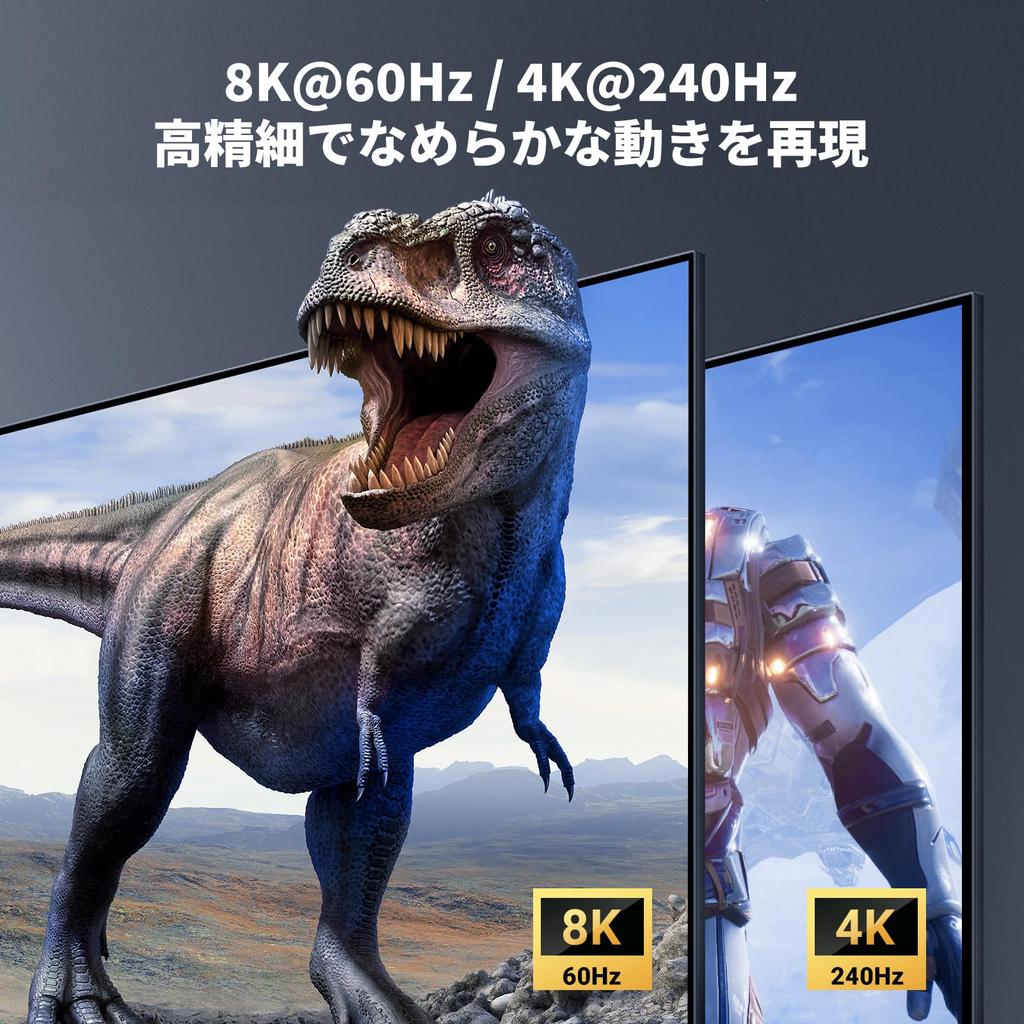 [8K60Hz / 4K240Hz Ultra-High-Definition Images] With 7,680 x 4,320 pixels (approximately 33.18 million pixels), 16 times the resolution of current Full HD, you can now see clearer, more vibrant image details. Even at 4K UHD resolution, the 240Hz refresh rate ensures smooth, blur-free display, making each scene more clearly visible. Note: To achieve 8K@60Hz resolution, your computer and monitor must support 8K, and the 8K DP1.4 input and output cables must be no longer than 1 meter AWG30.