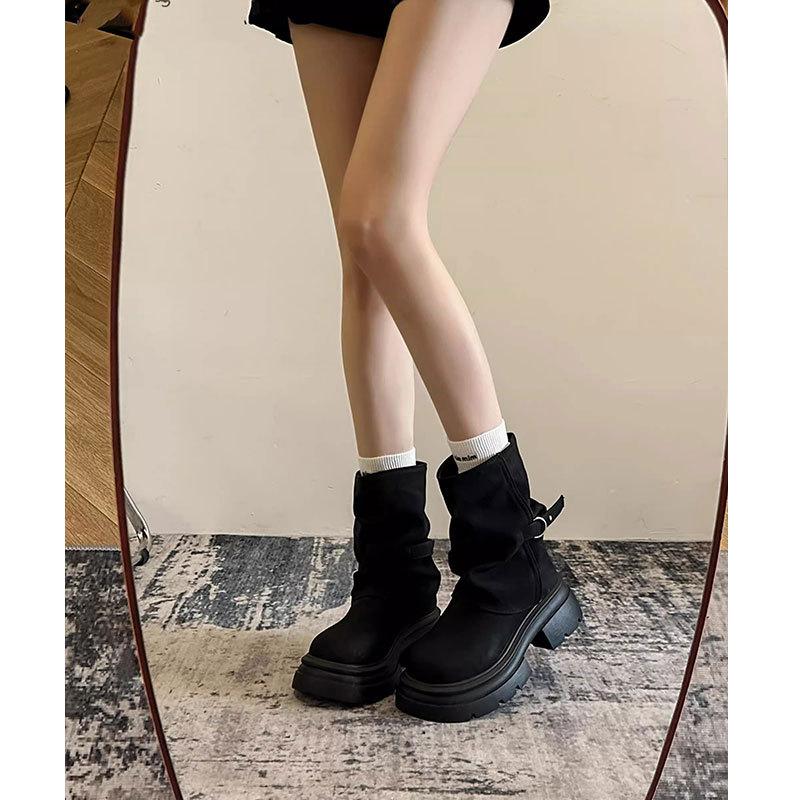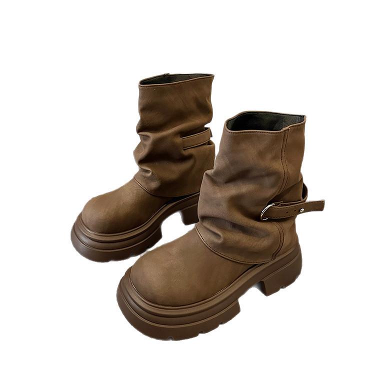 Кожаные ботинки Мартин женские 2025 осень новые ботинки-штаны на толстой подошве взрывные короткие ботинки Майяр на наборном каблуке тонкие ботинки
