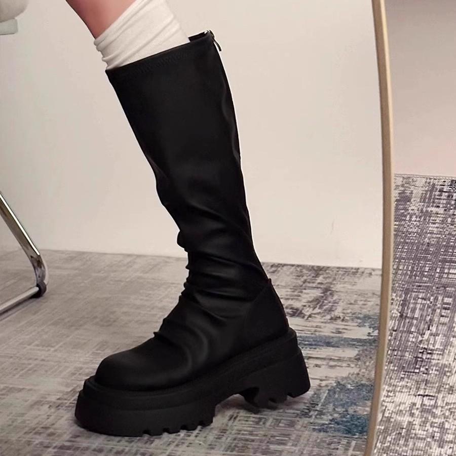 Популярные женские высокие сапоги 2025 новая осенняя тонкая толстоподошвенная модель до колена, сапоги-рыцари, маленькие высокие сапоги