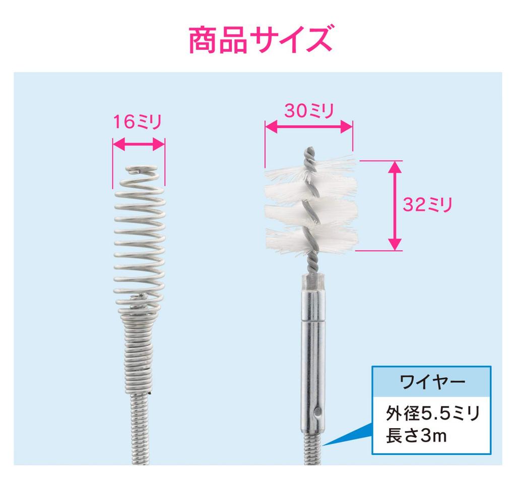 Gaona Korekamo Трос для прочистки труб с 3-метровым тросом для слива и щеткой, серебристый, (для труб, прочистка, очистка) GA-KK011