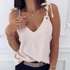 Женская мода однотонная без рукавов с v-образным вырезом и бантом, повседневная майка, жилет, блузка