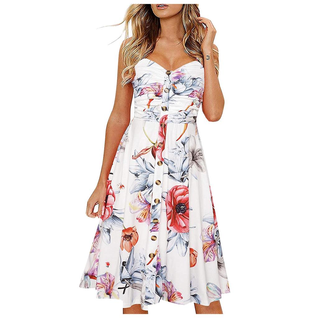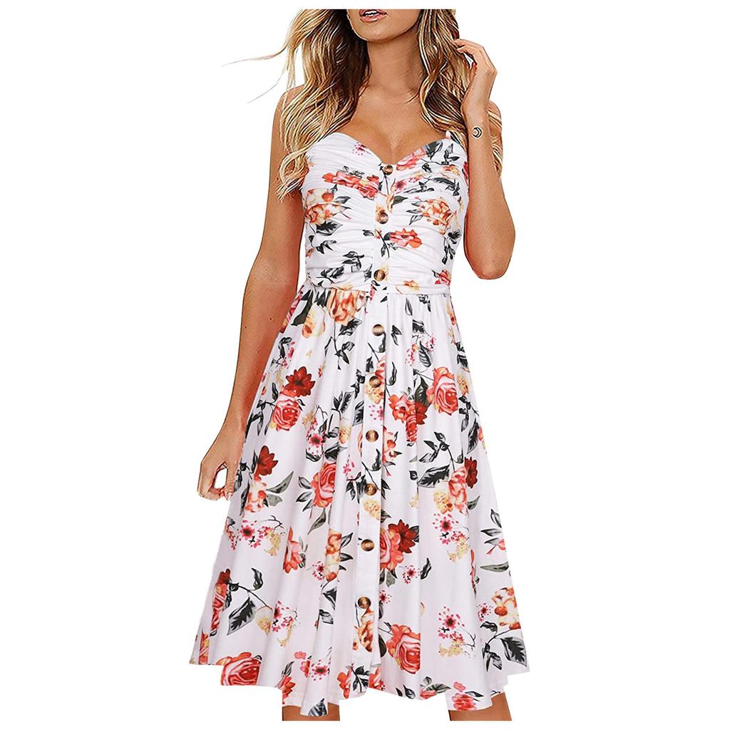 Модное женское повседневное платье с V-образным вырезом, принтом, пуговицами, прямого кроя, длиной до колена