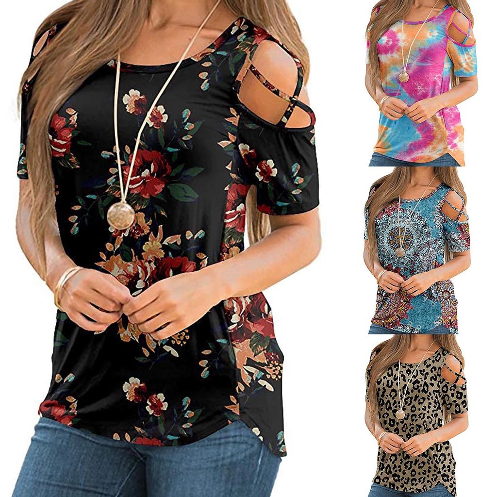 Женские летние футболки с короткими рукавами и открытыми плечами с принтом, топы, блузки