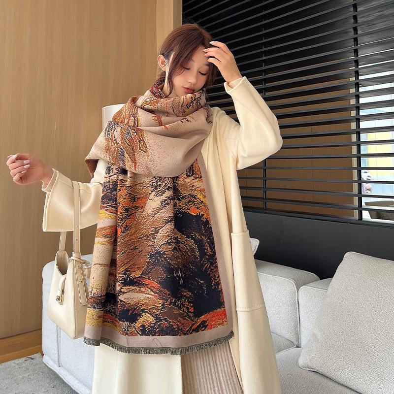 Имитация кашемирового шарфа для женщин на осень и зиму, изысканный модный шарф с китайской живописью, универсальная теплая шаль с кистями высокого класса — купить товар онлайн с бесплатной доставкой по всему миру!