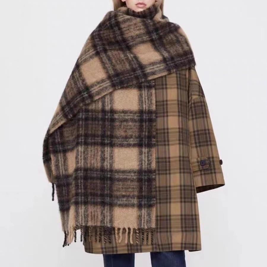 Универсальный шарф Maillard для женщин Осень и Зима Утолщенный мохеровый шарф Клетчатый Модный Корейский стиль Шаль с кисточками