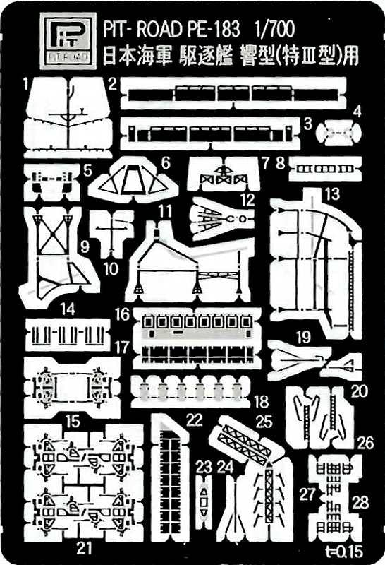 Запчасти в комплекте: Мачта, торпедный кран-балка, торпедный склад, стенд для загрузки глубинных бомб, азимутальная антенна, №. 13 радар, флагшток и т.д.