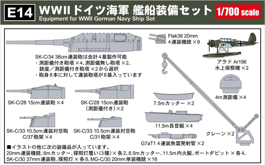 SK-C/34 38cm twin guns x 4 units can be produced (choose from 4 turrets with rangefinders, 2 turrets without rangefinders, or 2 turrets with turrets and rangefinders)