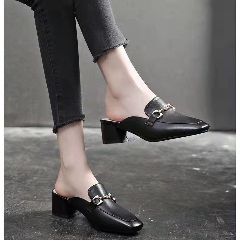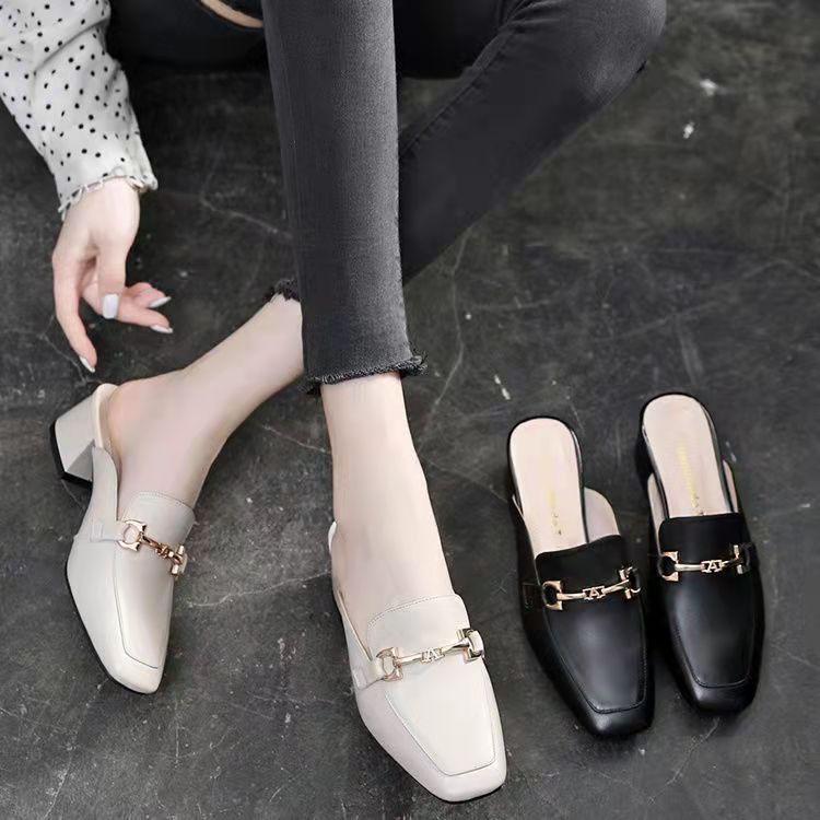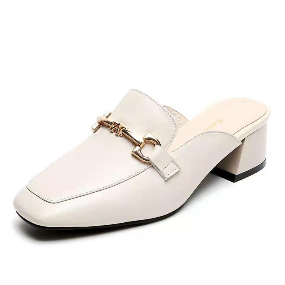 Тапочки Baotou, женская верхняя одежда, лето 2025, новые классные тапочки на толстом каблуке, туфли Muller, средний каблук, квадратная головка, ретро-туфли