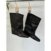Коровья кожа~ Осень и зима новые ботинки с внутренней высотой 5 см, квадратный носок, свободный голенище, полусапоги, женские короткие ботинки, модные рыцарские ботинки