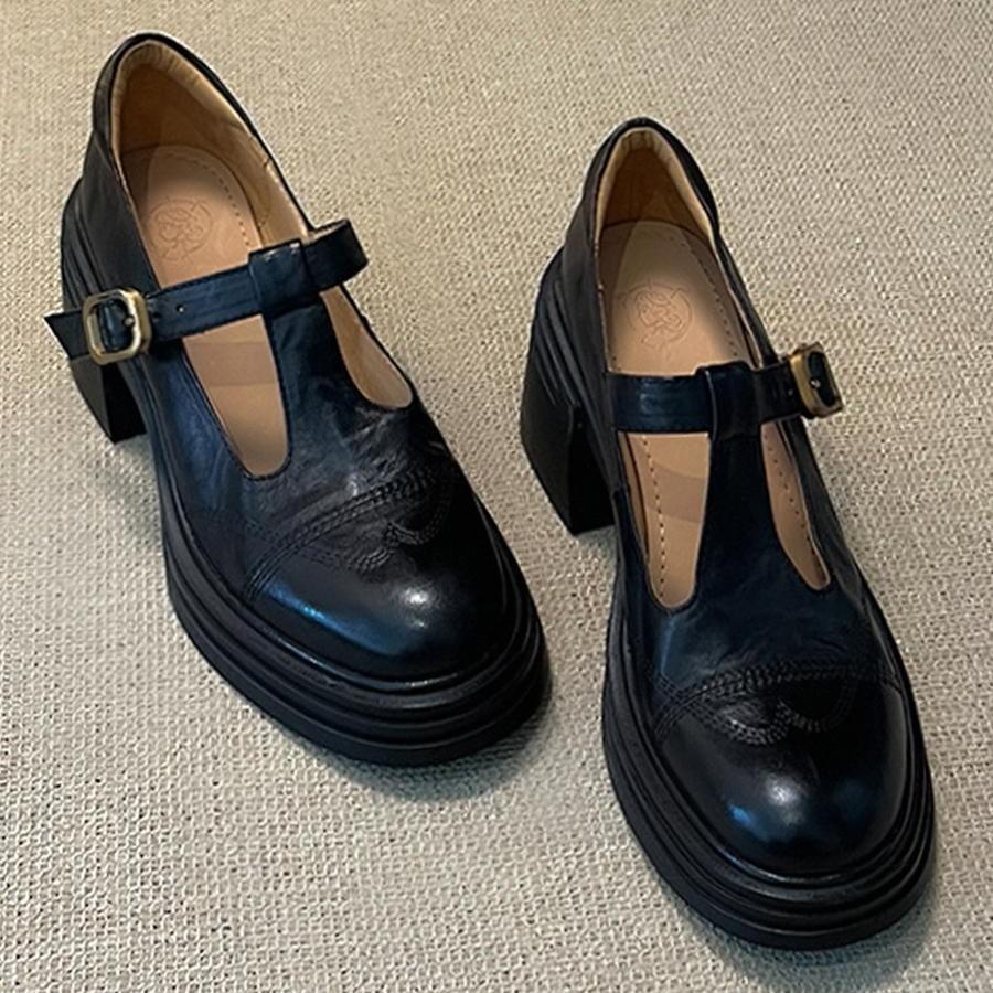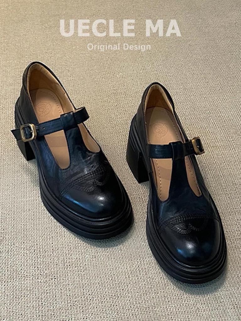 Коровья кожа~ Натуральная кожа на толстой подошве туфли Мэри Джейн женские черные на высоком каблуке толстый каблук ретро французские одинарные туфли увеличивающие рост маленькие кожаные туфли