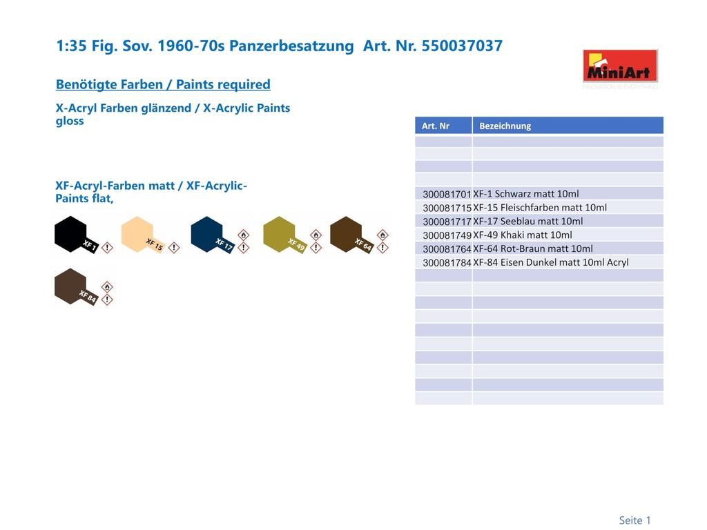 MiniArt Масштабный пластиковый набор советского танкового экипажа MA37037 1/35 1960-70-е годы (4 фигуры)