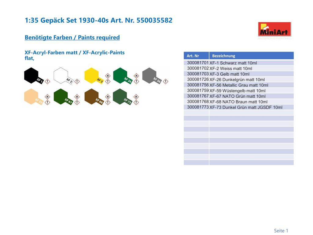 Miniart Scale Luggage Set Plastic Model MA35582 1/35 1930s-40s