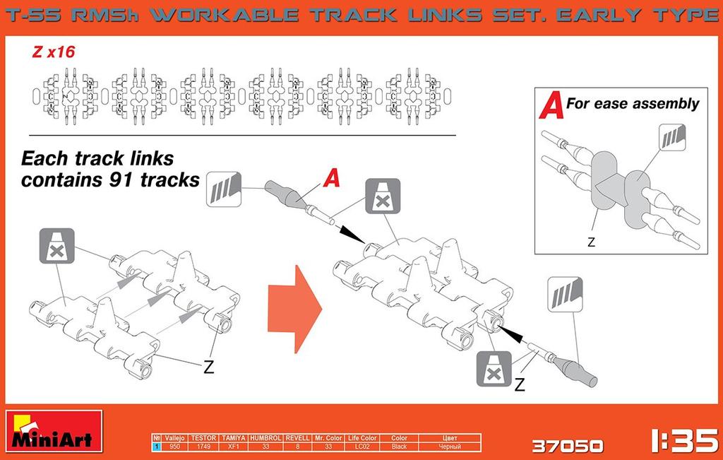 Miniart 1/35 scale Soviet T-55 RMSh Track Set Early Model, Articulated MA37050