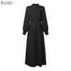 ZANZEA Элегантное женское платье с воротником-стойкой, пышными рукавами на пуговицах, приталенным силуэтом, повседневное, свободное, длинное, плиссированное