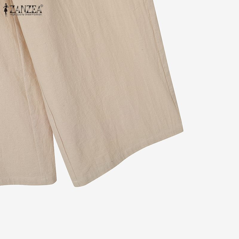 ZANZEA Женский костюм-двойка с V-образным вырезом и длинными рукавами, блузка на шнуровке и брюки, повседневные комплекты