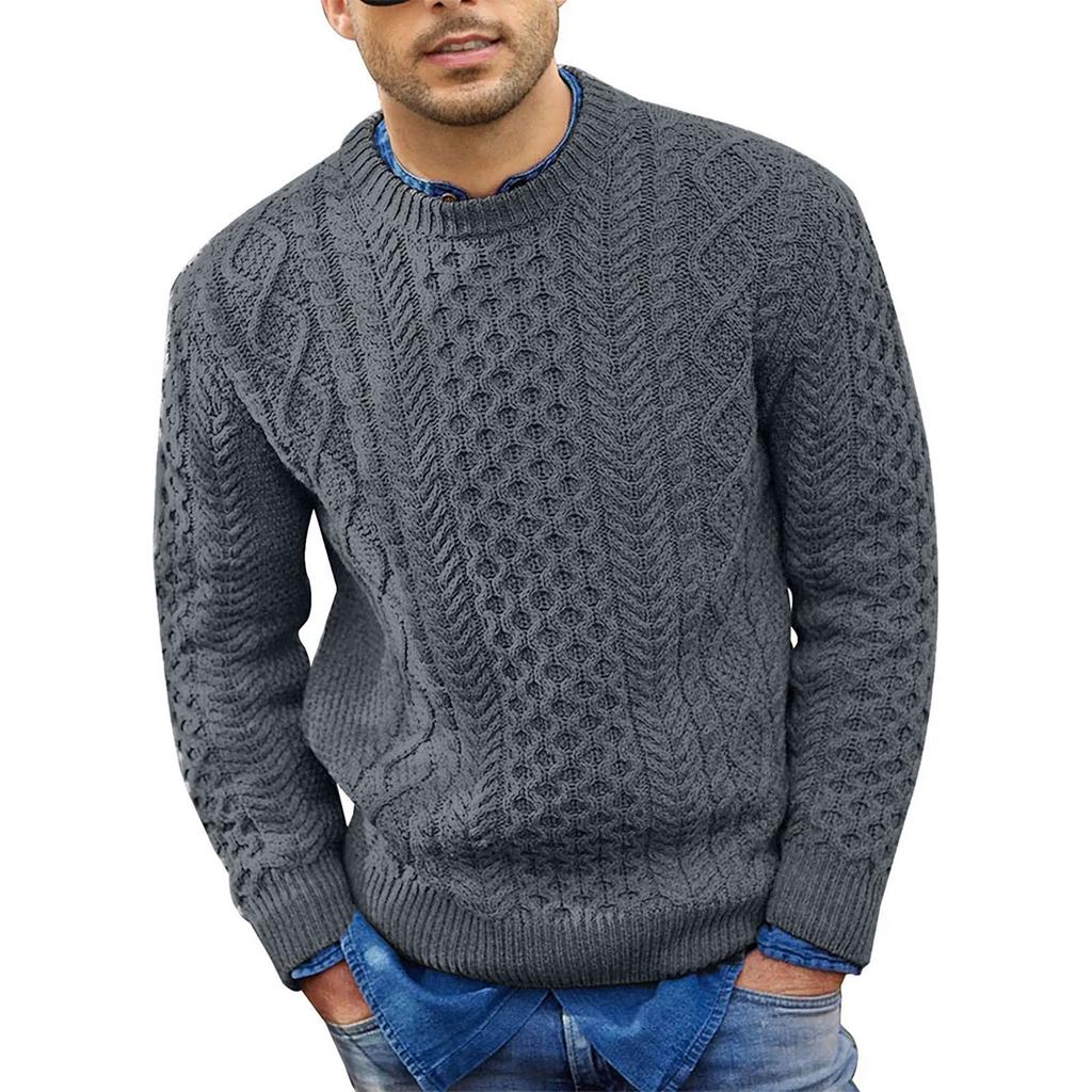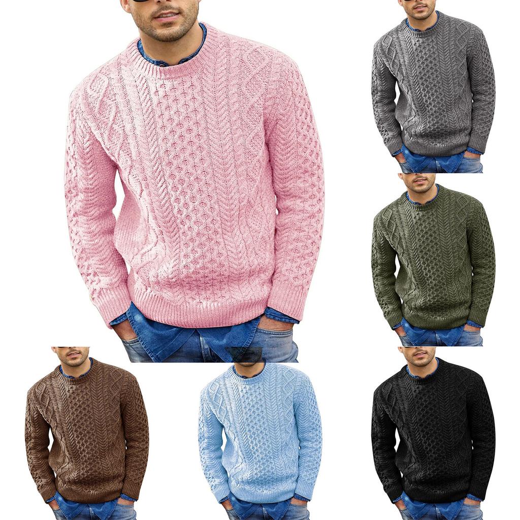Мужской свитер, однотонный модный вязаный топ с круглым вырезом и длинными рукавами