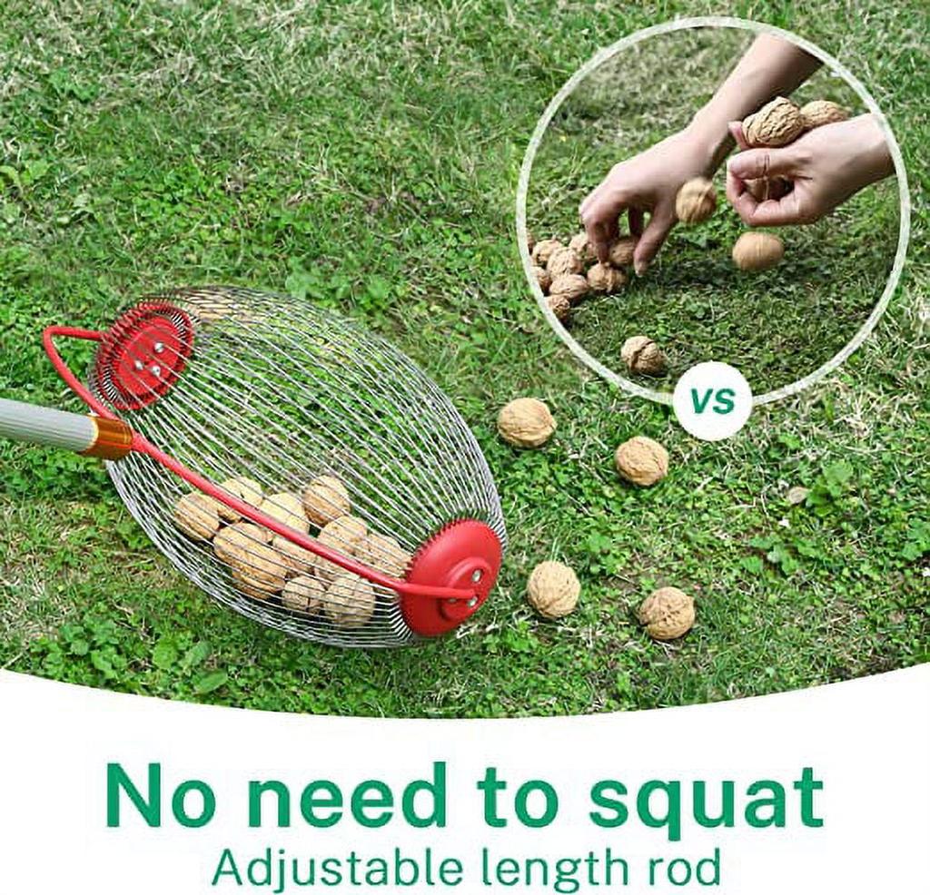 【Многоцелевой】- Помимо орехов, сборщик орехов можно использовать для пеканов, крупных желудей, орехов гикори, диких яблок, дротиков Nerf, конских каштанов, черных орехов, масляных орехов, семян ликвидамбара, мячей для гольфа и тенниса, лимонов, лаймов, мандаринов и других предметов диаметром 0,5-2,5 дюйма.
