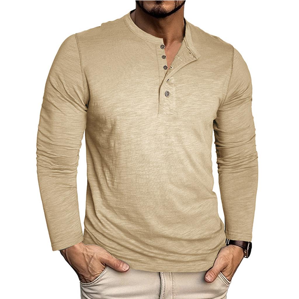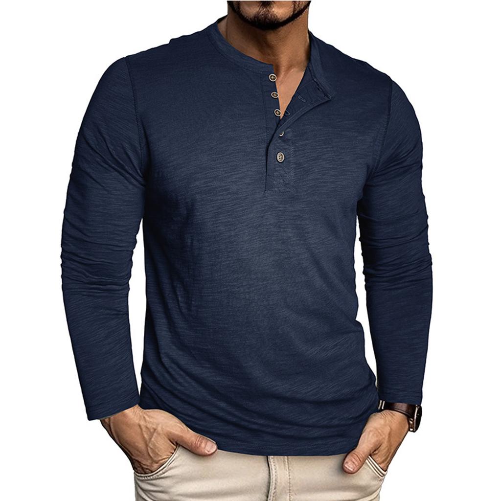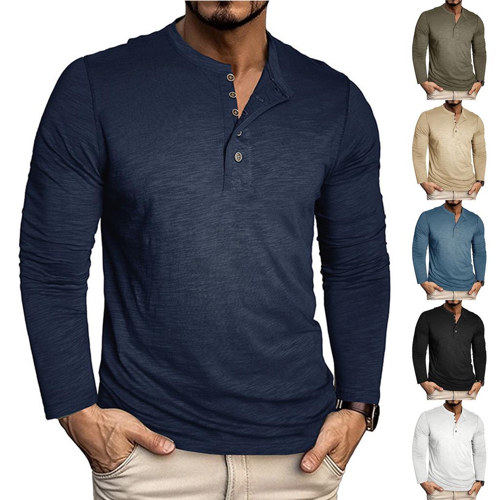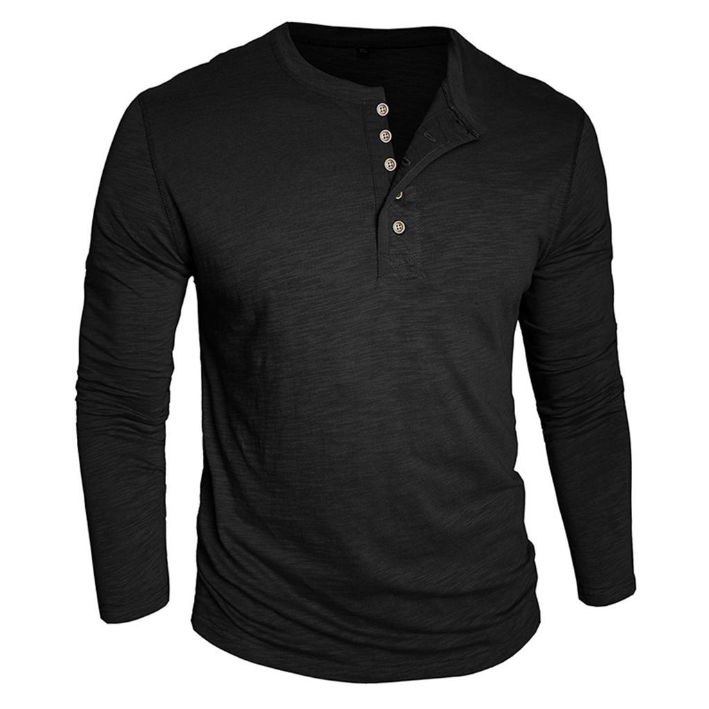 Мужской однотонный топ с лацканами на пуговицах и длинными рукавами, мужской повседневный модный топ с длинными рукавами