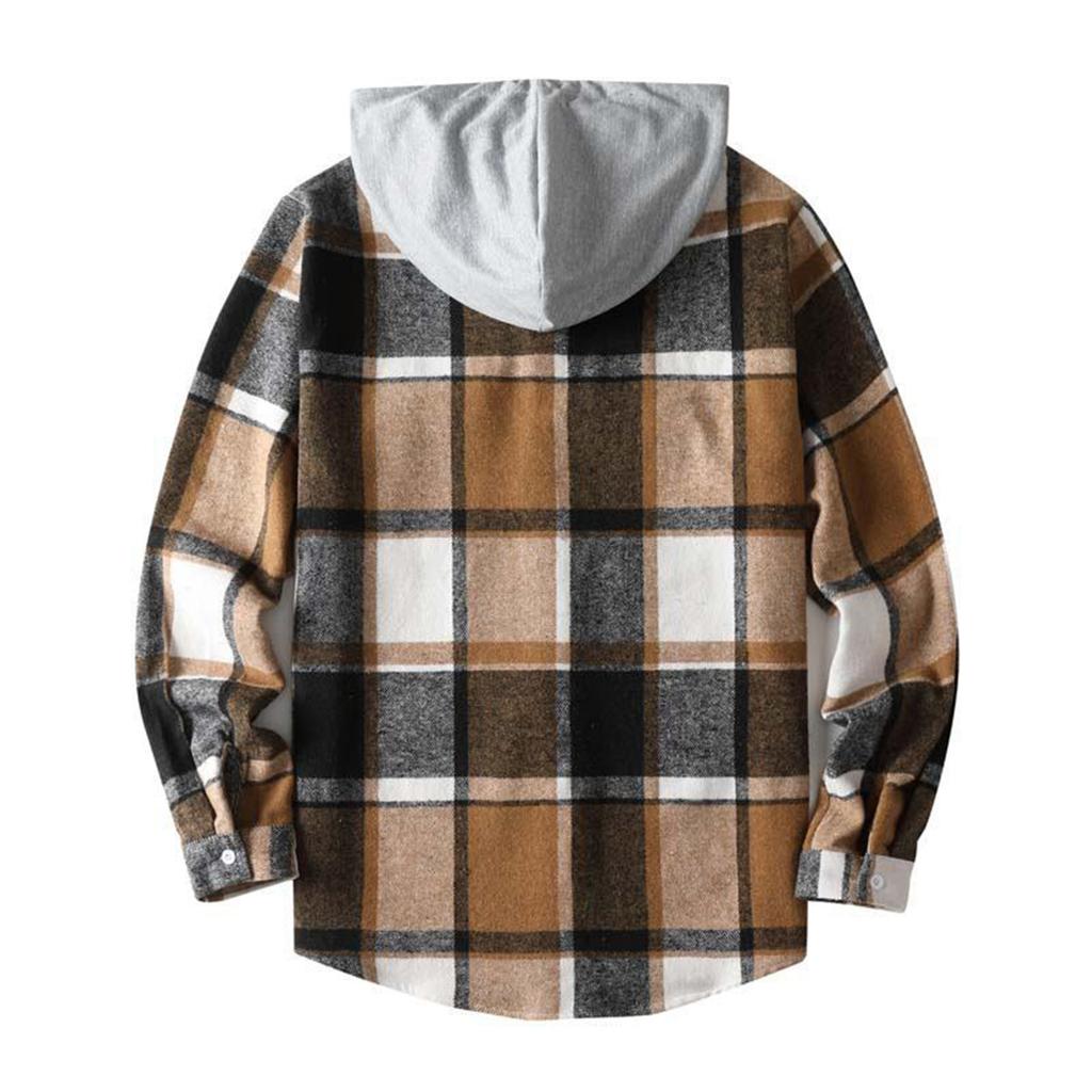 Мужской полосатый клетчатый повседневный свободный кардиган-рубашка с капюшоном на пуговицах с лацканами и длинными рукавами