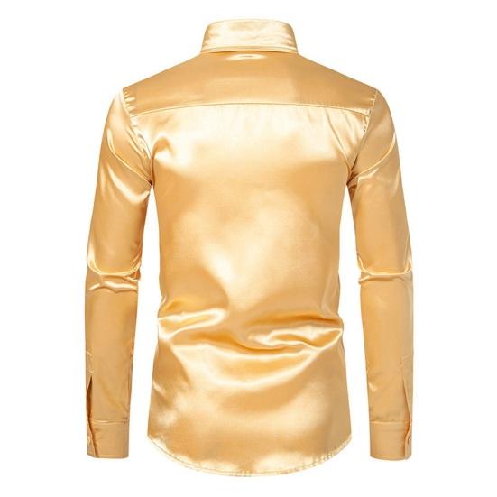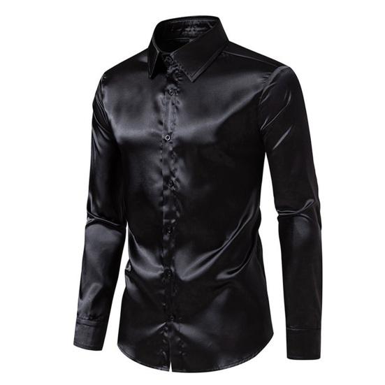 Мужская шелковая атласная рубашка с длинным рукавом, повседневная приталенная классическая рубашка, стильная однотонная рубашка с лацканами на пуговицах, деловые официальные рубашки