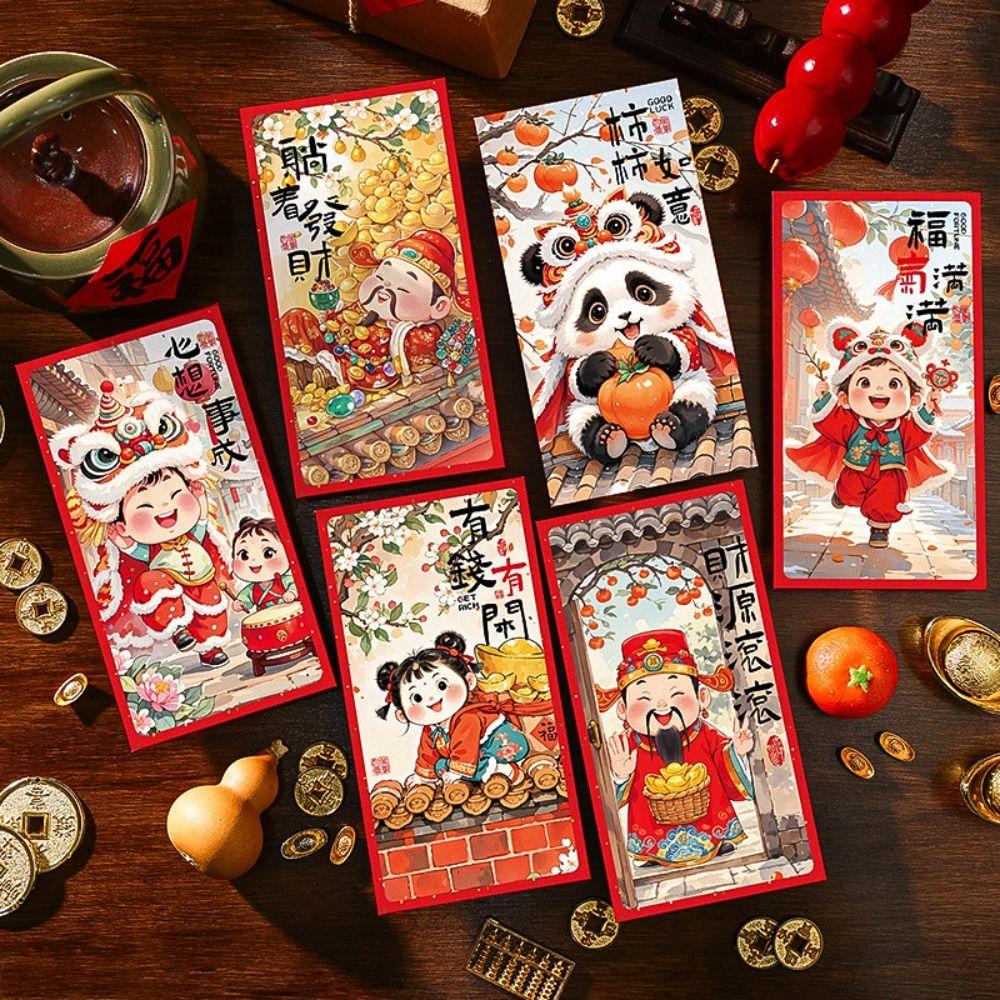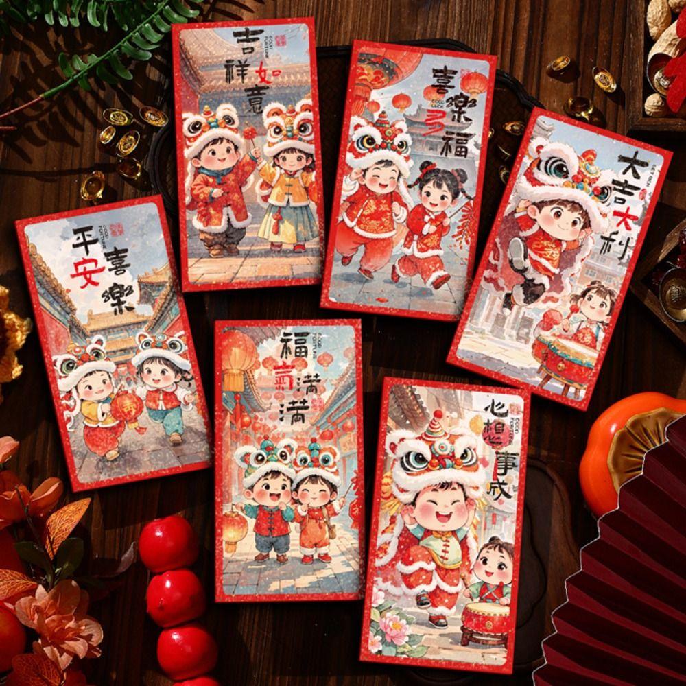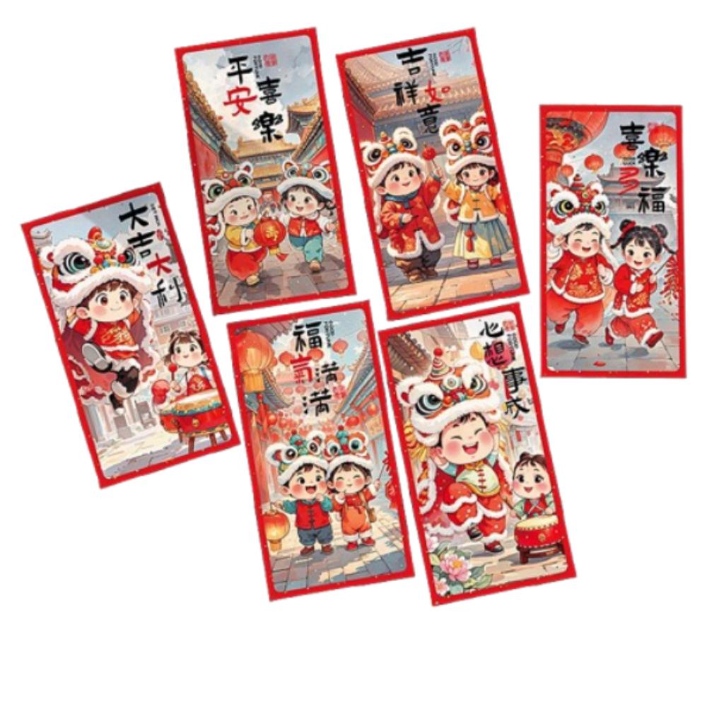 6pcs Traditional Children's Money Bag Blessing Lucky Money Packet Kids Gift