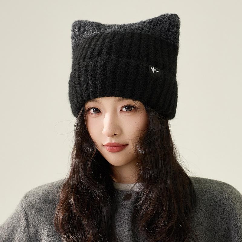 Осенне-зимняя бархатная теплая шерстяная шапка Женская зимняя шапка с кошачьими ушками и защитой ушей Вязаная шапка