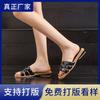 Индивидуализированные плетеные шлепанцы с открытым носком и квадратным носком, женская уличная обувь 2025, ленивая универсальная уличная обувь, пляжные сандалии для женщин