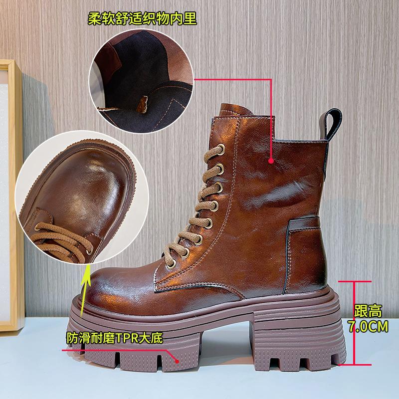 Кожаные ботинки Мартин женские 2025 осень и зима новые женские туфли на высоком каблуке ретро полированные короткие ботинки повседневные универсальные тонкие женские ботинки — купить товар онлайн с бесплатной доставкой по всему миру!