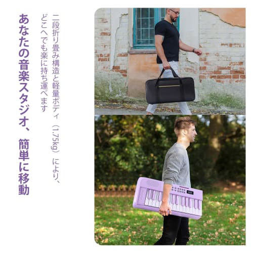 - 🎹 Складная 61-клавишная клавиатура, которую легко носить с собой и наслаждаться музыкой где угодно 61-клавишная клавиатура, которая компактно складывается. Вы можете легко носить ее не только дома или в классе, но и в путешествии или в командировке. Легкая конструкция экономит место и комфортно поддерживает вашу музыкальную жизнь, не мешая даже в ограниченном пространстве.