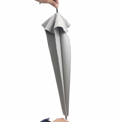 Reusable, absorbent cleaning swab for wind instruments, including saxophone, alto, tenor saxophone, and flutes. Gray saxophone maintenance tool.