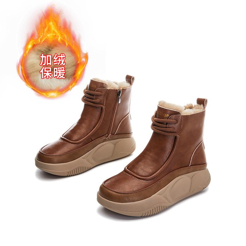Кожаные зимние ботинки из кроличьего меха 2025 зима новые на толстой подошве с увеличением роста женские ботинки модные универсальные короткие ботинки теплые ботинки Мартин