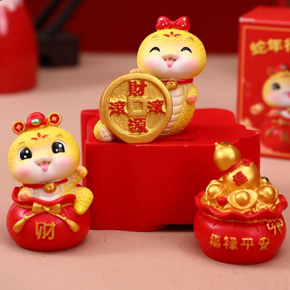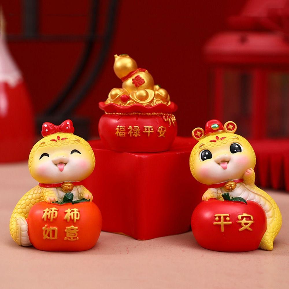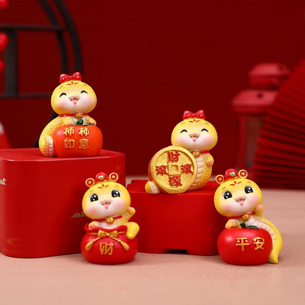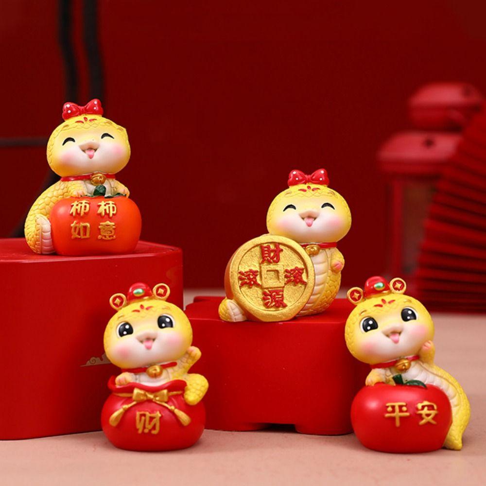 Mini Cartoon Snake Figurines Resin Car Interior Ornament Cute Snake Ornament Spring Festival
