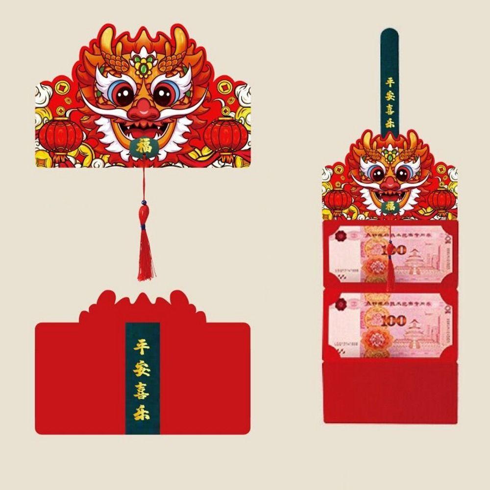С кисточками 2024 Складной красный конверт Горячее тиснение Счастливый фестивальный пакет Новый год
