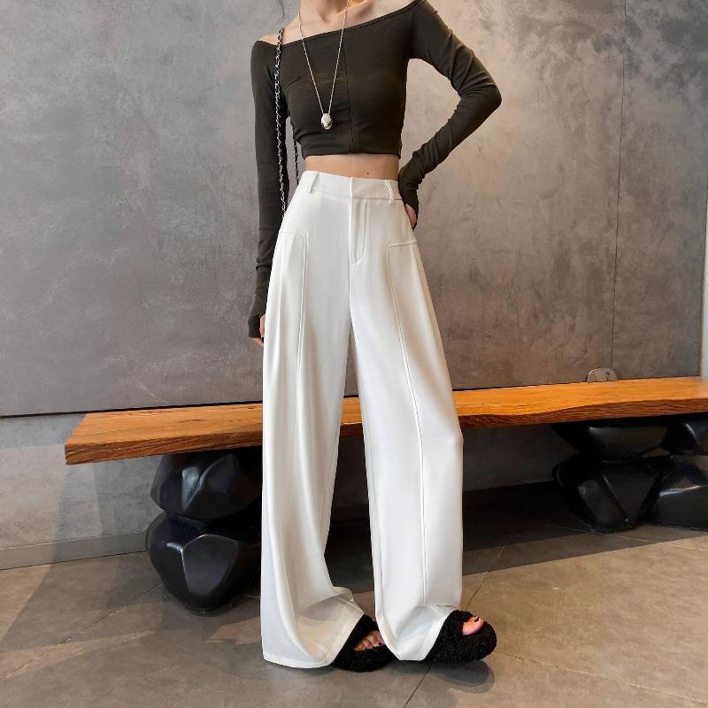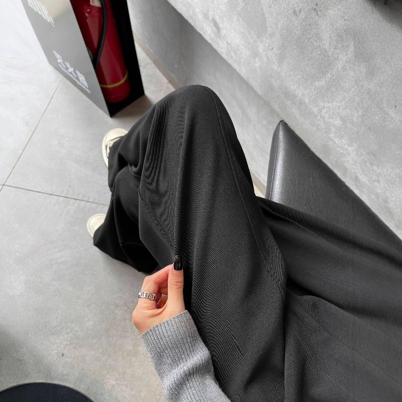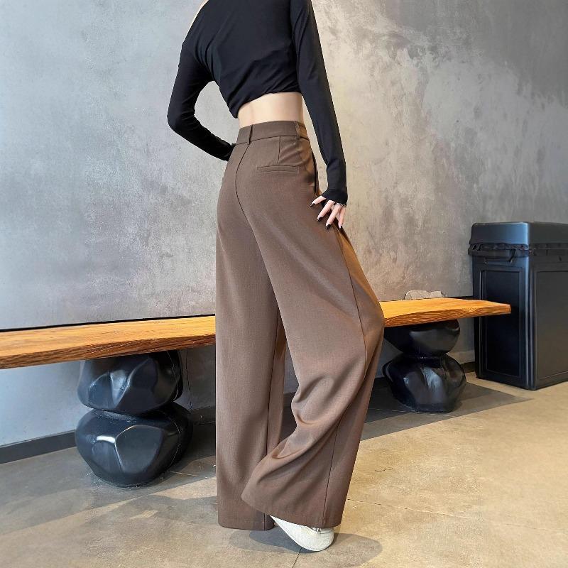 Кофейный костюм брюки палаццо весна и осень новый драпировка свободный крой высокая посадка прямые черные повседневные брюки дети