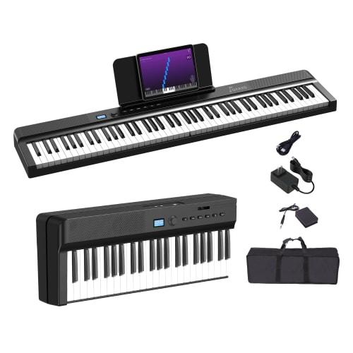 OYAYO Improved Sound Quality Digital Piano, 88 Keys, Foldable, Rechargeable, Semi-Weighted Keys, MIDI Compatible, Acoustic Piano Size, 129 Voices, Ped