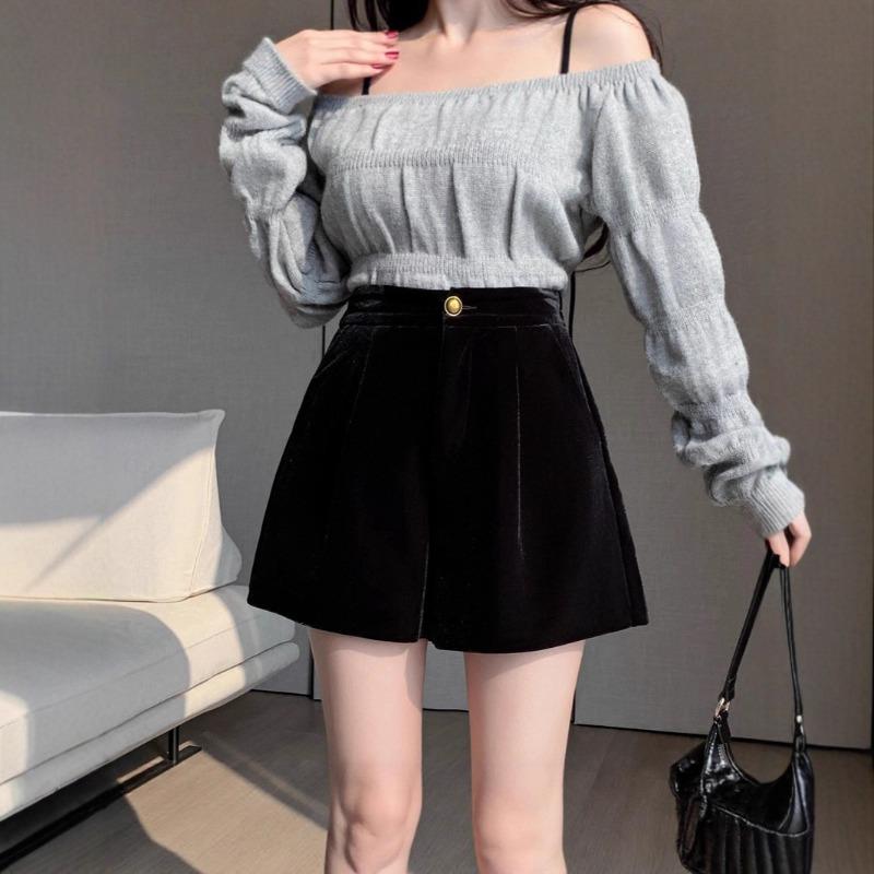 Черные золотые бархатные шорты женские осенне-зимние бархатные маленькие мужские с высокой талией и тонкие свободные широкие штанины слово под низ ботинки